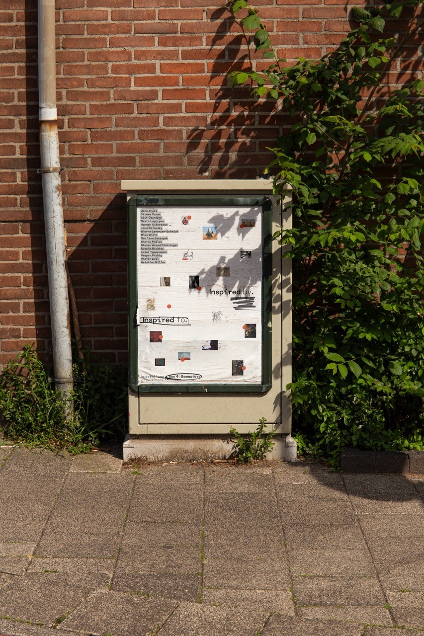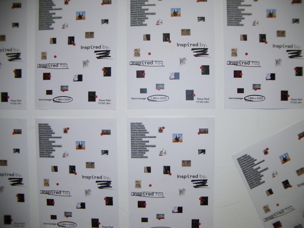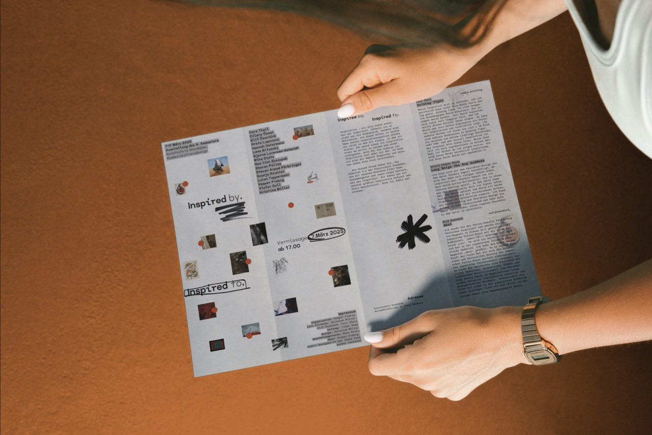Die Poster und Faltflyer vermitteln nicht nur Informationen über die Werke, sondern spielen auch visuell mit dem Konzept der Inspiration. Jedes kleine Bild im Design steht stellvertretend für ein Werk einer ausstellenden Künstler*in.